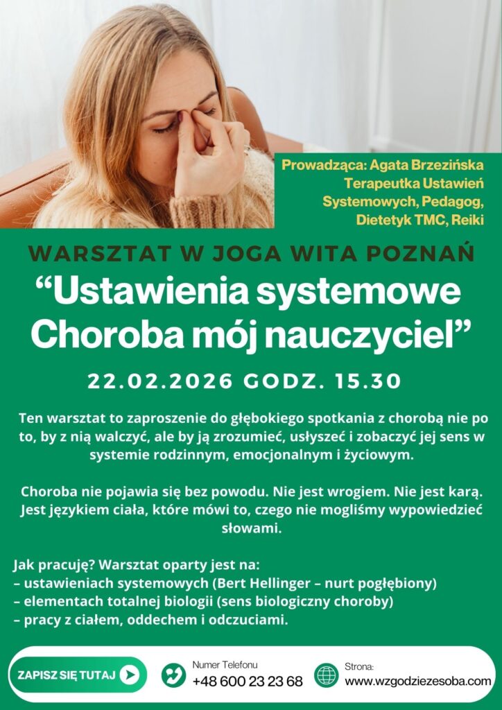 Ten warsztat to zaproszenie do głębokiego spotkania z chorobą – nie po to, by z nią walczyć, ale by ją zrozumieć, usłyszeć i zobaczyć jej sens w systemie rodzinnym, emocjonalnym i życiowym..