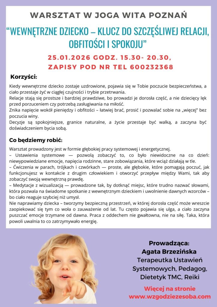 „WEWNĘTRZNE DZIECKO – KLUCZ DO SZCZĘŚLIWEJ RELACJI, OBFITOŚCI I SPOKOJU”